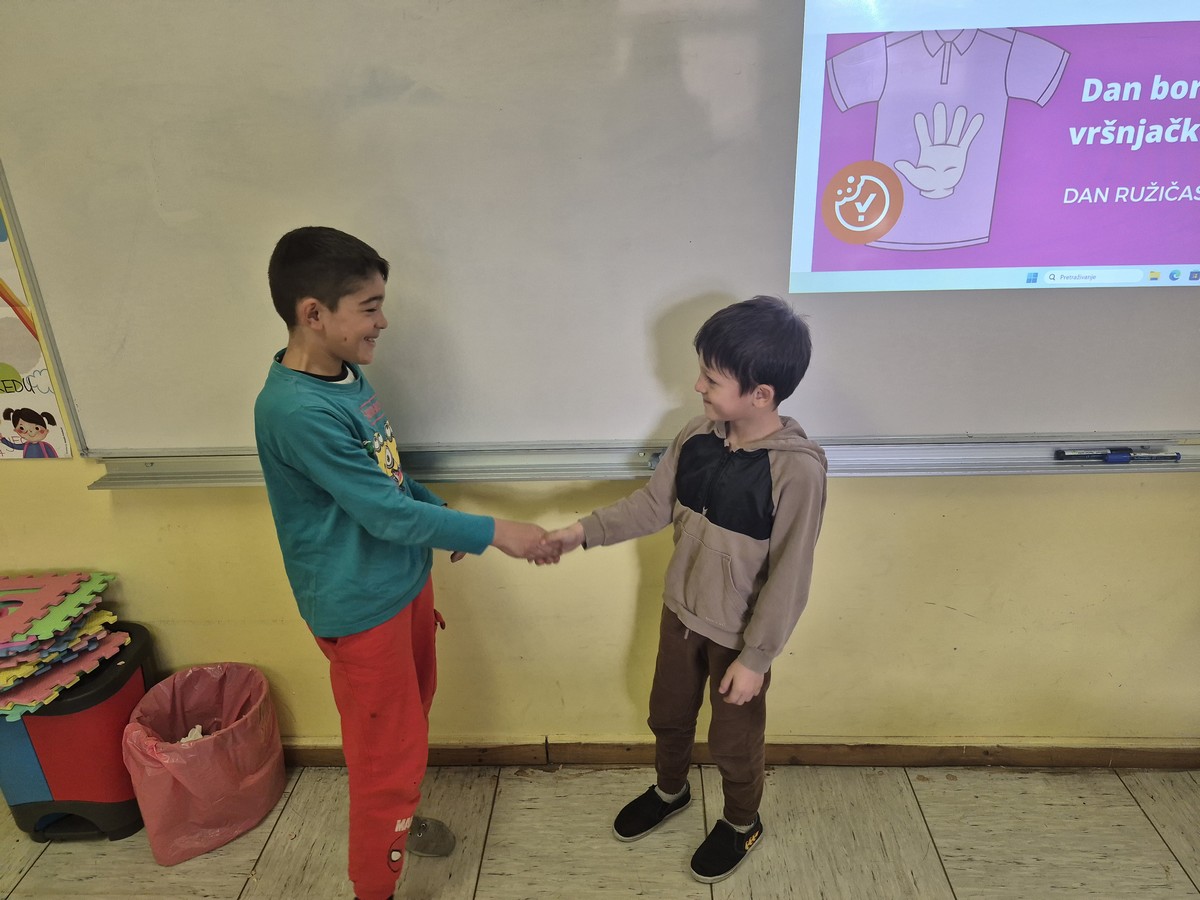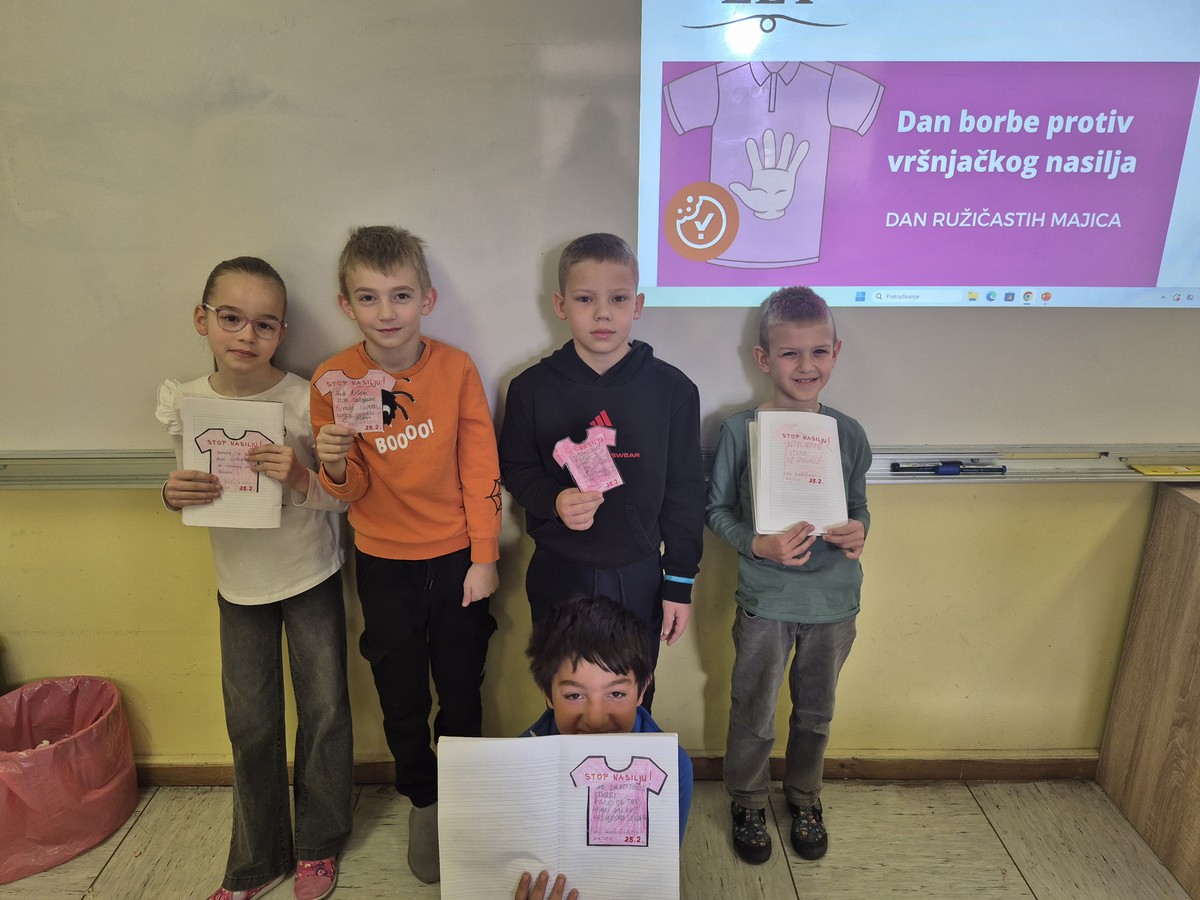 Obilježili smo Dan ružičastih majica i razgovarali kako se trebamo uvijek ispričati jedni drugima u slučaju sukoba i biti dobri prijatelji.