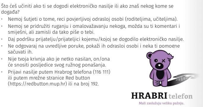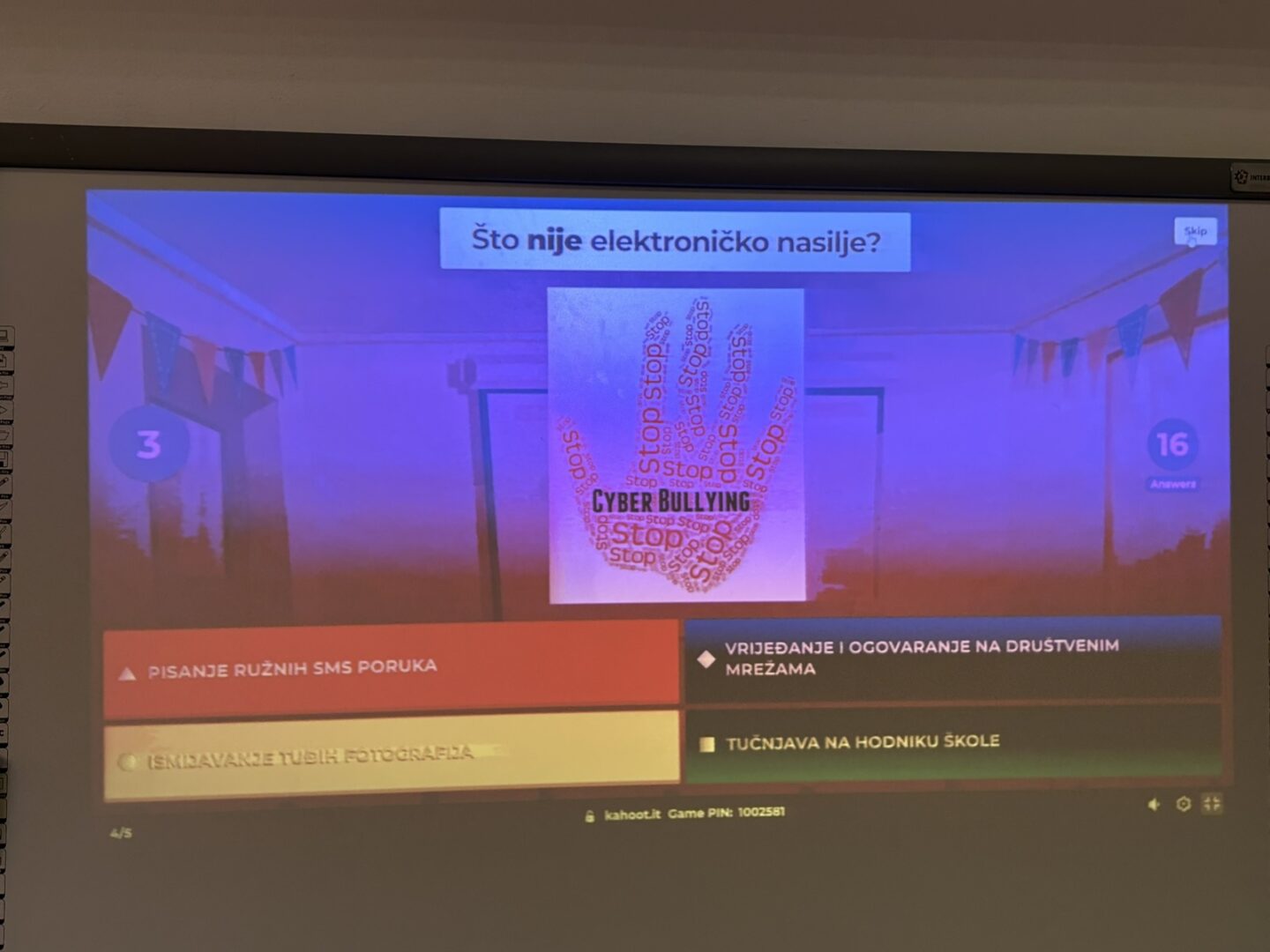 Učenici drugih razreda su na satovima informatike ponovili što je Internet, kako se treba na internetu ponašati, što se smatra neprihvatljivim ponašanjem, koje su razlike i pravila u stvarnom i virtualnom svijetu. Tokom nastave puno se priča o elektroničkom nasilju (cyberbullyingu), ali još više o podizanju svijesti učenika kako elektroničko nasilje izbjeći, kako na njega reagirati i u krajnjem slučaju kome se obratiti i gdje ga prijaviti.