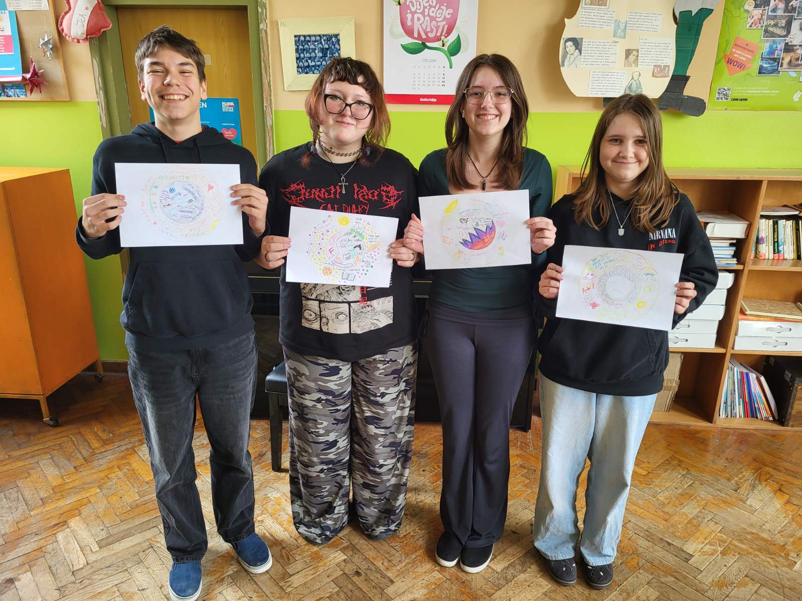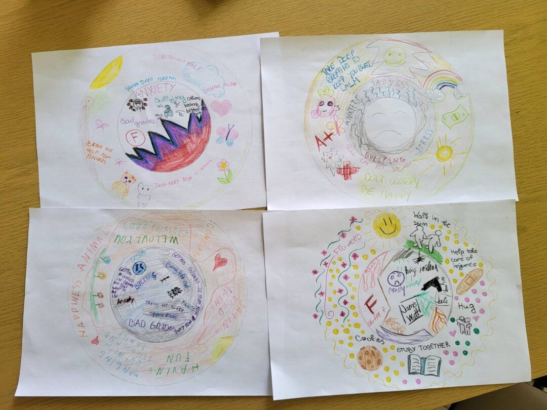 Na DOD-u iz engleskog napravili smo aktivnost vezanu uz emocionalnu potporu među vršnjacima, naziva Circle of Emotional Comfort. Učenici su unutar kruga na sredini papira napisali i dočarali crtežima i bojama negativne misli koje im se javljaju tijekom boravka u školi i šire (radovi su anonimni). Zatim su radove nasumično međusobno podijelili te su u veći koncentrični krug oko negativnog pisali i dočaravali crtežima načine na koje bi ublažili, uklonili ili pomogli pri problemima koje je netko od njihovih vršnjaka (ne znajući tko) upisao u unutarnji krug. Na taj način smo htjeli pokazati kako je moguća emocionalna pomoć i potpora u zajednici bez obzira poznajemo li se jako dobro i družimo li se zajedno svaki dan ili ne – svatko zaslužuje pomoć i potporu i svatko je može na neki način pružiti.