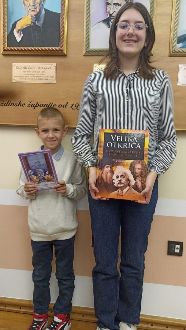 U pratnji naše školske knjižničarke svečanosti su prisustvovale i naši učenici – najčitači za prošlu školsku godinu – Mateo Vrbnjak (2. d) i Dorotea Oković (8. a).