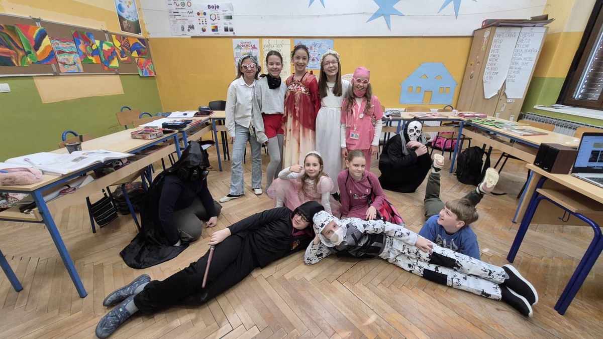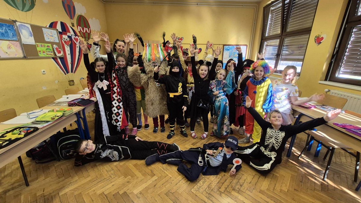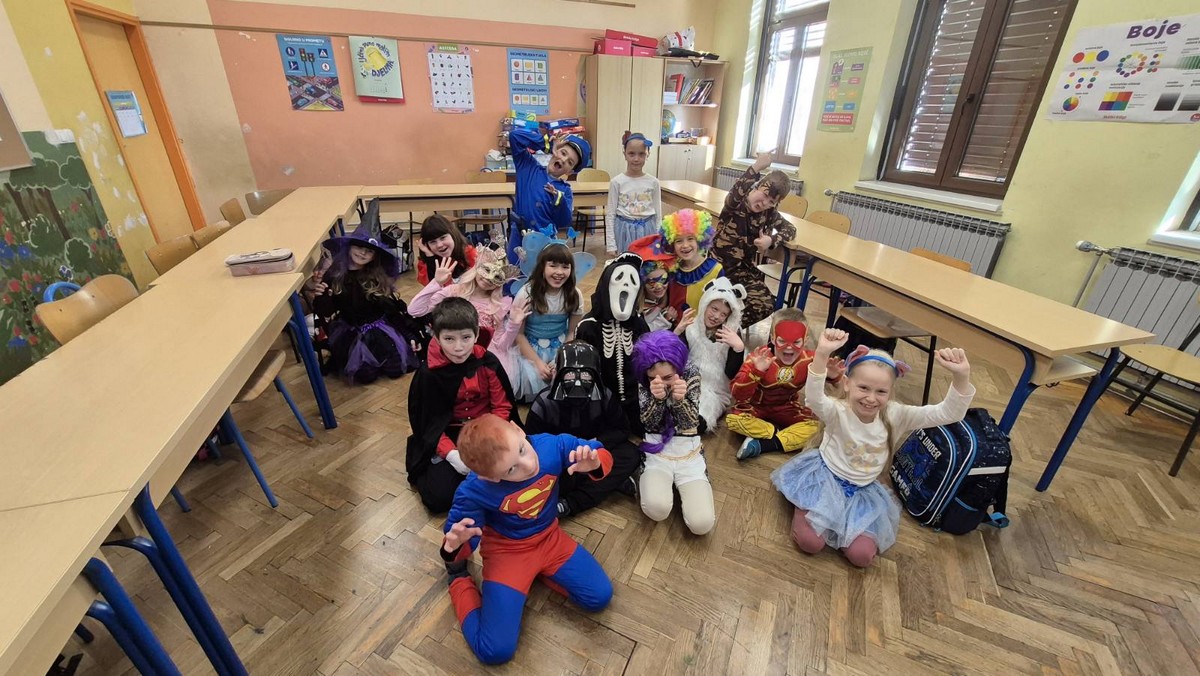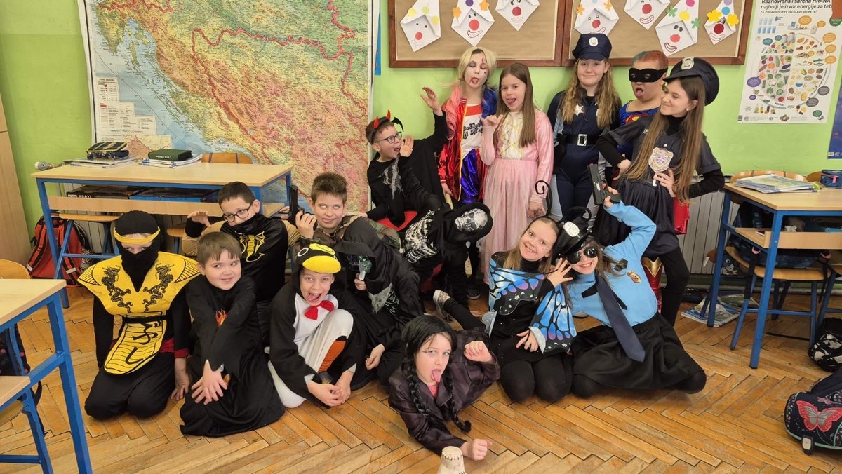 U utorak su našom malom školom zavladale maškare. Bilo je tu princeza, vještica, policajaca, raznih životinja i jedan pravi kurent. Prošetali smo selom, a na kraju zaplesali pod maskma u razredima.
