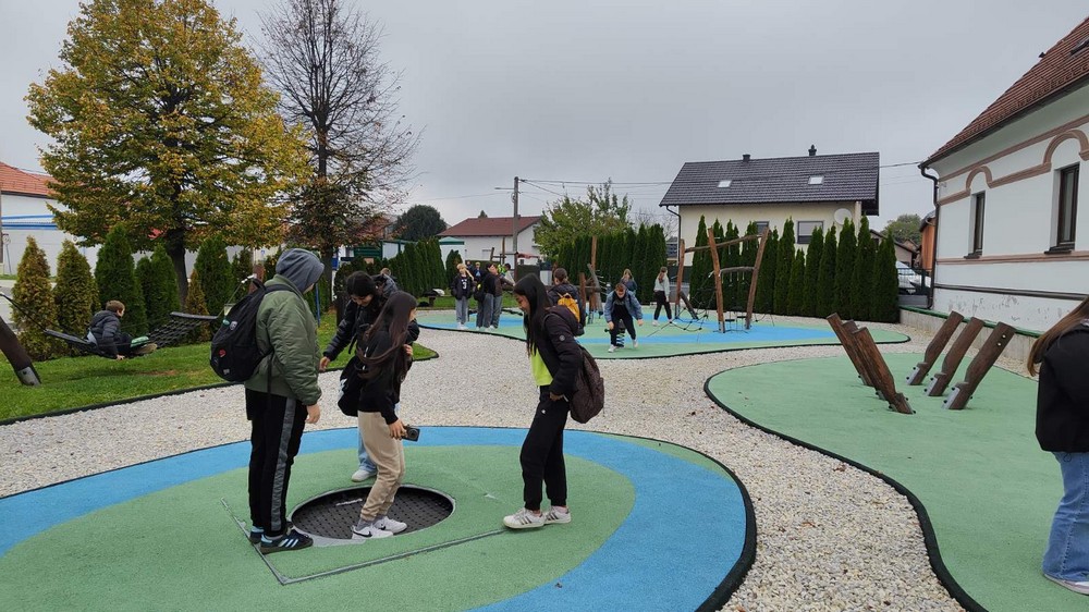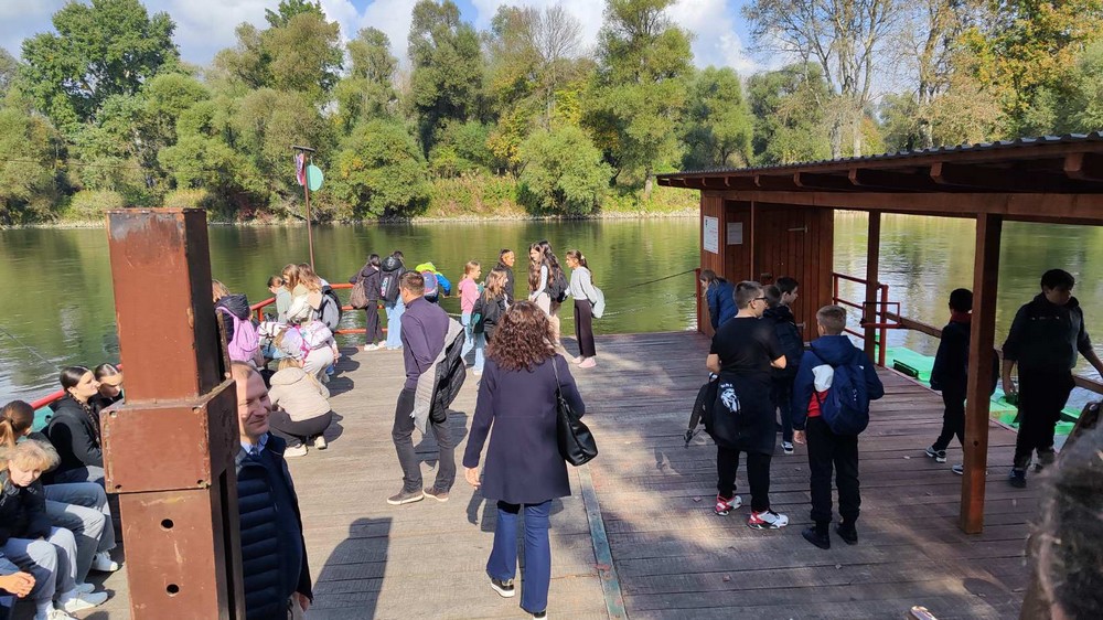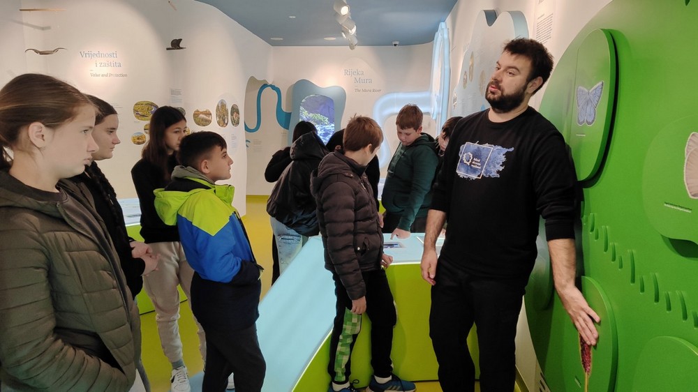 Prva postaja bio je Centar za posjetitelje “Med dvemi vodami” u Križovcu, koji je smješten između dviju rijeka – Mure i Drave. U moderno opremljenoj galeriji učenici su kroz stalni interpretacijski postav imali priliku saznati više o flori i fauni Međimurja, rijekama, močvarnim staništima i važnosti njihove zaštite. Osim razgledavanja postava, učenici su uživali u igri i druženju na dječjem igralištu Rječica, smještenom uz Centar. Nakon toga uslijedio je posjet Spomen-domu rudarstva Cimper u Murskom Središću. Učenici su tamo doznali koliko je rudarstvo bilo važno za povijest i razvoj tog kraja, a sam naziv mjesta “grad rudara” govori o dubokoj povezanosti lokalne zajednice s rudarskom tradicijom. Sljedeća stanica bila je vožnja skelom preko rijeke Mure, nakon koje su učenici prošetali uz rijeku, uživajući u prirodnim ljepotama tog kraja. Nakon organiziranog ručka, učenici su imali slobodno vrijeme koje su proveli na igralištu uz Muru u opuštenom druženju i igri.