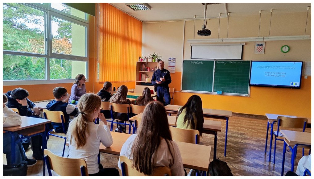 Djelatnik Policijske uprave varaždinske, policijski službenik za prevenciju Siniša Lah održao je dana 23. listopada 2025. godine radionice na temu nasilja na internetu – cyberbullyinga. U radionicama su sudjelovali učenici 6.a, 6.b i 6.c razreda. Bilo je korisno čuti vrijedne informacije kako bismo se lakše zaštitili od brojnih rizika u virtualnom svijetu.