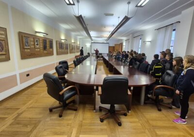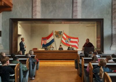 Učenici trećih razreda imali su i prijam u Županijskoj palači. Ugostio ih je gospodin Krunoslav Lukačić, predsjednik Županijske skupštine. Učenike je zanimalo kako izgledaju sjednice, koliko pitanja vijećnici smiju postaviti, koje su ovlasti predsjednika. Nakon toga direktor Turističke zajednice Goran Mališ proveo ih je kroz Centar za posjetitelje i otkrio im najzanimljivije tajne naše Županije.