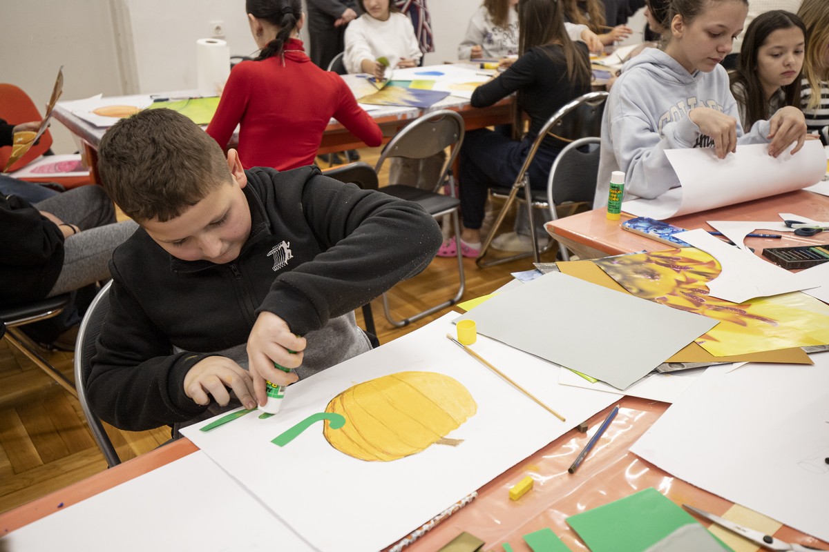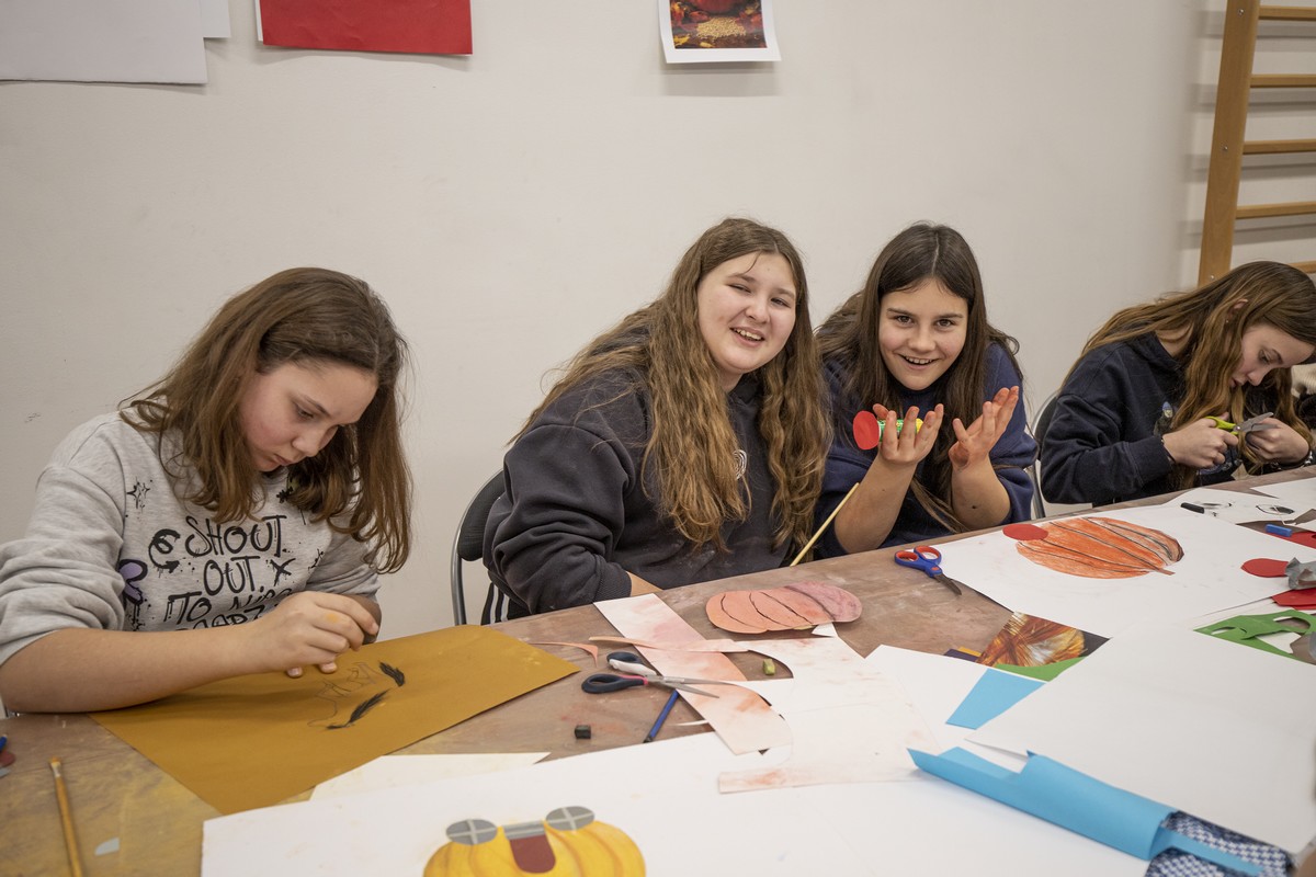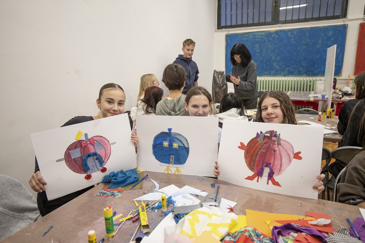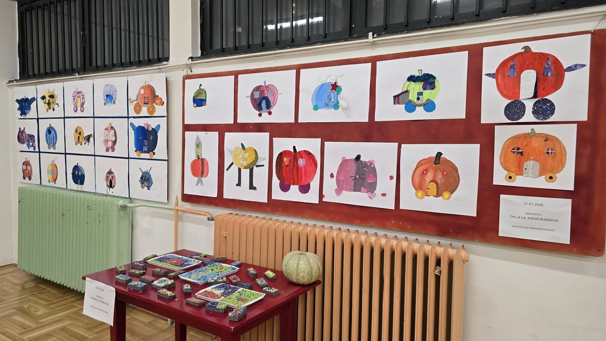 Nakon razgledavanja izložbe, učenici su se uputili u Centar za pružanje usluga u zajednici „Vladimir Nazor“, gdje su ih djelatnici Centra srdačno dočekali i počastili ručkom. U ugodnoj i prijateljskoj atmosferi učenici su sudjelovali u likovnoj radionici Malog ZILIK-a pod nazivom „Oh la la, kakva bundeva!“, koju je vodila umjetnica Margerita Rakić. Zadatak je bio nacrtati bundevu pastelama, zatim je izrezati iz papira, zalijepiti je na novi papir te je dodatno dekorirati prema vlastitoj mašti. Učenici su s velikim zanimanjem i entuzijazmom pristupili radu, a rezultat su bili brojni originalni i maštoviti likovni radovi koje su učenici sa zadovoljstvom predstavili ostalima. Tijekom boravka u Centru imali su priliku razgledati i radove umjetnika Velikog ZILIK-a te osobno upoznati neke od sudionika kolonije, što je za učenike predstavljalo posebno vrijedno i inspirativno iskustvo.