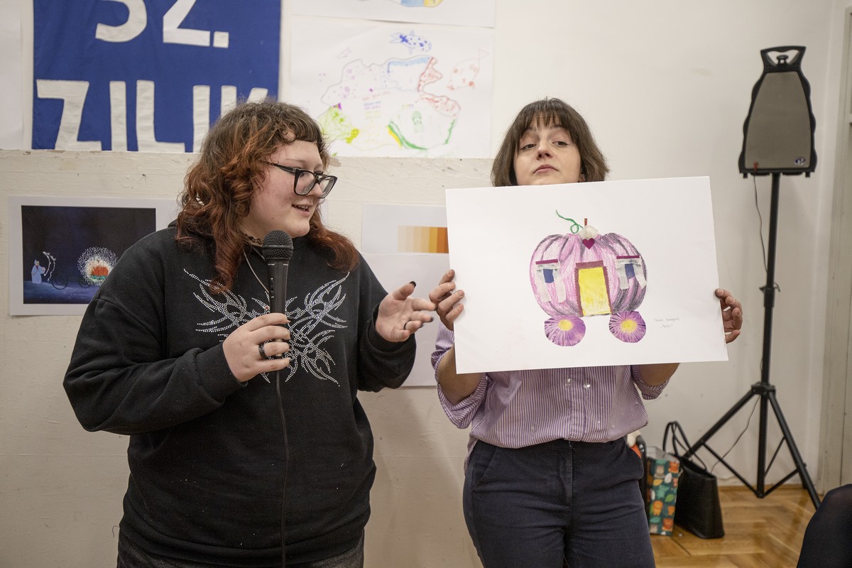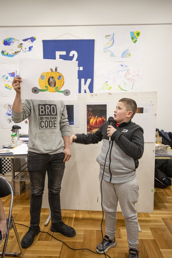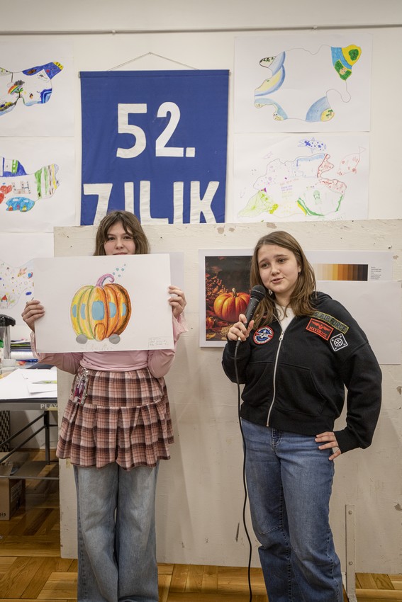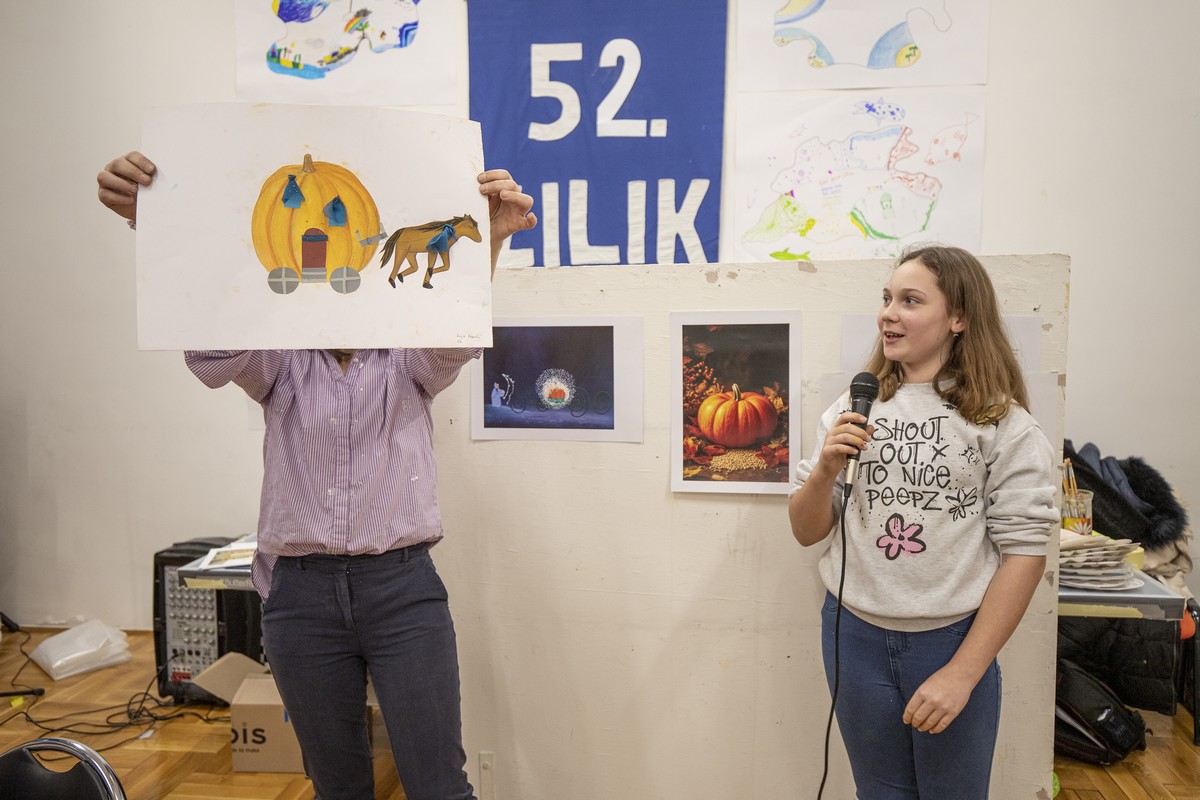 Nakon razgledavanja izložbe, učenici su se uputili u Centar za pružanje usluga u zajednici „Vladimir Nazor“, gdje su ih djelatnici Centra srdačno dočekali i počastili ručkom. U ugodnoj i prijateljskoj atmosferi učenici su sudjelovali u likovnoj radionici Malog ZILIK-a pod nazivom „Oh la la, kakva bundeva!“, koju je vodila umjetnica Margerita Rakić. Zadatak je bio nacrtati bundevu pastelama, zatim je izrezati iz papira, zalijepiti je na novi papir te je dodatno dekorirati prema vlastitoj mašti. Učenici su s velikim zanimanjem i entuzijazmom pristupili radu, a rezultat su bili brojni originalni i maštoviti likovni radovi koje su učenici sa zadovoljstvom predstavili ostalima. Tijekom boravka u Centru imali su priliku razgledati i radove umjetnika Velikog ZILIK-a te osobno upoznati neke od sudionika kolonije, što je za učenike predstavljalo posebno vrijedno i inspirativno iskustvo.