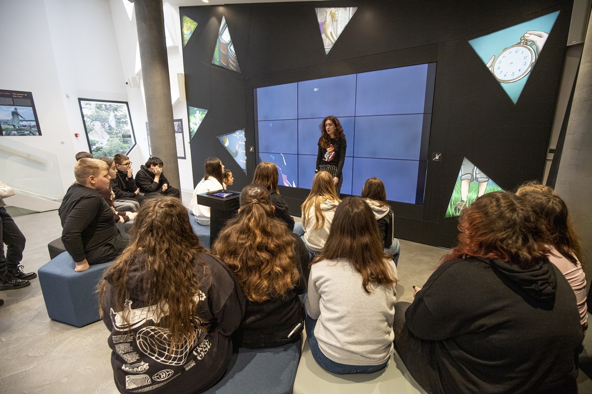 U poslijepodnevnim satima posjetili su grupnu izložbu „Što je sreća“, na kojoj su izloženi radovi međunarodnih umjetnika i djece iz Centra za pružanje usluga u zajednici „Vladimir Nazor“ koja je svečano otvorila 52. ZILIK. Učenici su imali zadatak odabrati dva rada koji su im najzanimljiviji i obrazložiti svoj odabir te prepoznati tehniku s kojom je rad naslikan, što je dodatno potaknulo njihovu kreativnost i kritičko razmišljanje.